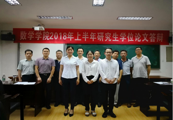 5月30日,太阳成集团tyc2018届学科教学(数学)专业硕士研究生学位论文答辩会在五号学楼5511学术报告厅举行,学院特邀湖南师范大学昌国良教授、湖南科技大学曾友良教授、岳阳市教科院费建华教研员等专家,与我校太阳成集团tyc孙明保院长、甘向阳书记、张映辉副院长、研究生院江五元副院长、禹辉煌副教授等共同组成答辩委员会。学校研究生院黄红霞老师出席答辩会;2017级全体研究生于现场聆听答辩。