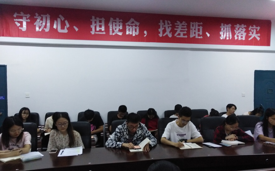 本站讯9月23日19:30,太阳成集团tyc学生党支部于5306会议室召开支部“不忘初心、牢记使命”主题教育推进会。会议对“不忘初心、牢记使命”主题教育进行了进一步深入学习。学生党支部全体党员参加。