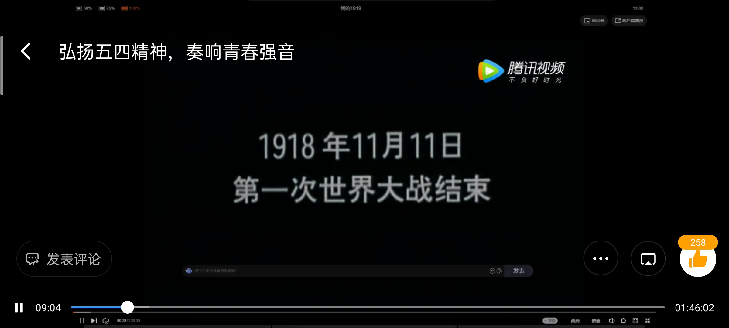 活动开始,全体同志在线观看五四爱国电影《我的1919》。本片讲述了顾维钧为捍卫民族尊严拒绝在巴黎和会上签订“凡尔赛条约”的这段历史。观影过程中,同志们的心情随着电影情节而跌宕起伏,仿佛置身于那个时代。他们深感“弱国无外交”的真理,并坚信只要每个中国人心怀祖国、奋发有为,祖国未来可期!