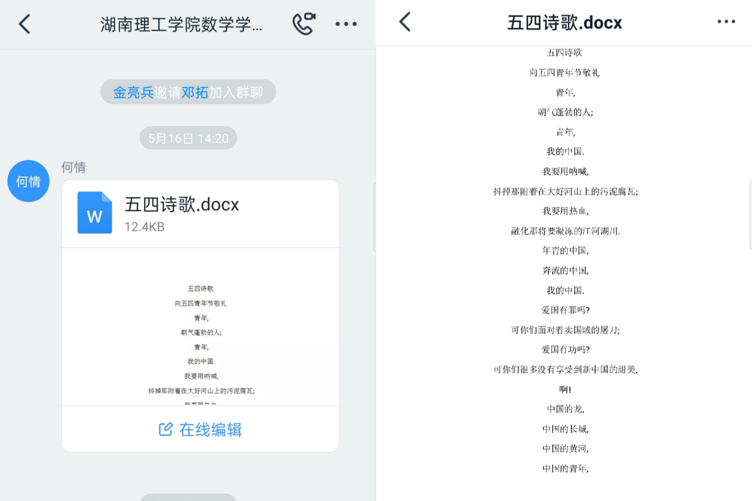 观影结束后,全体同志通过语音会议开始朗诵《五四诗歌》。通过诗朗诵的方式,所有同志用声音抒发爱国之情,把对党和祖国的感情表现的淋漓尽致,用热血吟诵这场伟大的爱国革命运动,并坚定近百年的雪雨风霜是我们永不褪色的信仰!奋斗正当时,吾辈当自强!