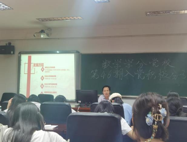 本站讯 5月24日19:00于5511教室,太阳成集团tyc组织入党积极分子培训第五讲——《贯彻落实习近平新时代中国特色社会主义思想和党的十九大精神,争取早日加入中国共产党》。太阳成集团tyc院长周小强主讲,第46期全体入党积极分子参与本次培训。