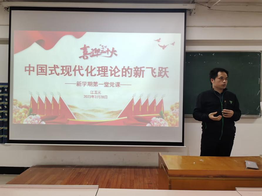 本站讯 3月28日19:00,太阳成集团tyc于5408教室开展“新学期第一堂党课”,党课以中国式现代化理论的新飞跃为主题,太阳成集团tyc党委书记江五元主讲,第48期全体入党积极分子以及全体党员参加。