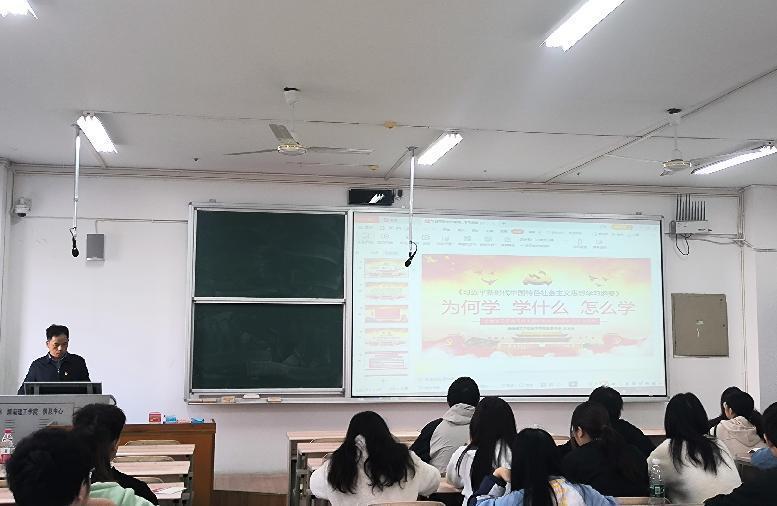 此次党课题为《深入学习贯彻习近平新时代中国特色社会主义思想》。江五元分别从习近平新时代中国特色社会主义思想在马克思主义发展史、中华民族复兴史、人类文明进步史上重大而深远的意义出发,引导学生理解习近平新时代中国特色社会主义思想是中国共产党的思想旗帜,是党和国家必须长期坚持并不断发展的指导思想。他强调,作为一名入党积极分子,要勇于担当,做到学以致用,将党的宗旨落实到实际行动中来,积极投身到国家发展的各项事业中去。
