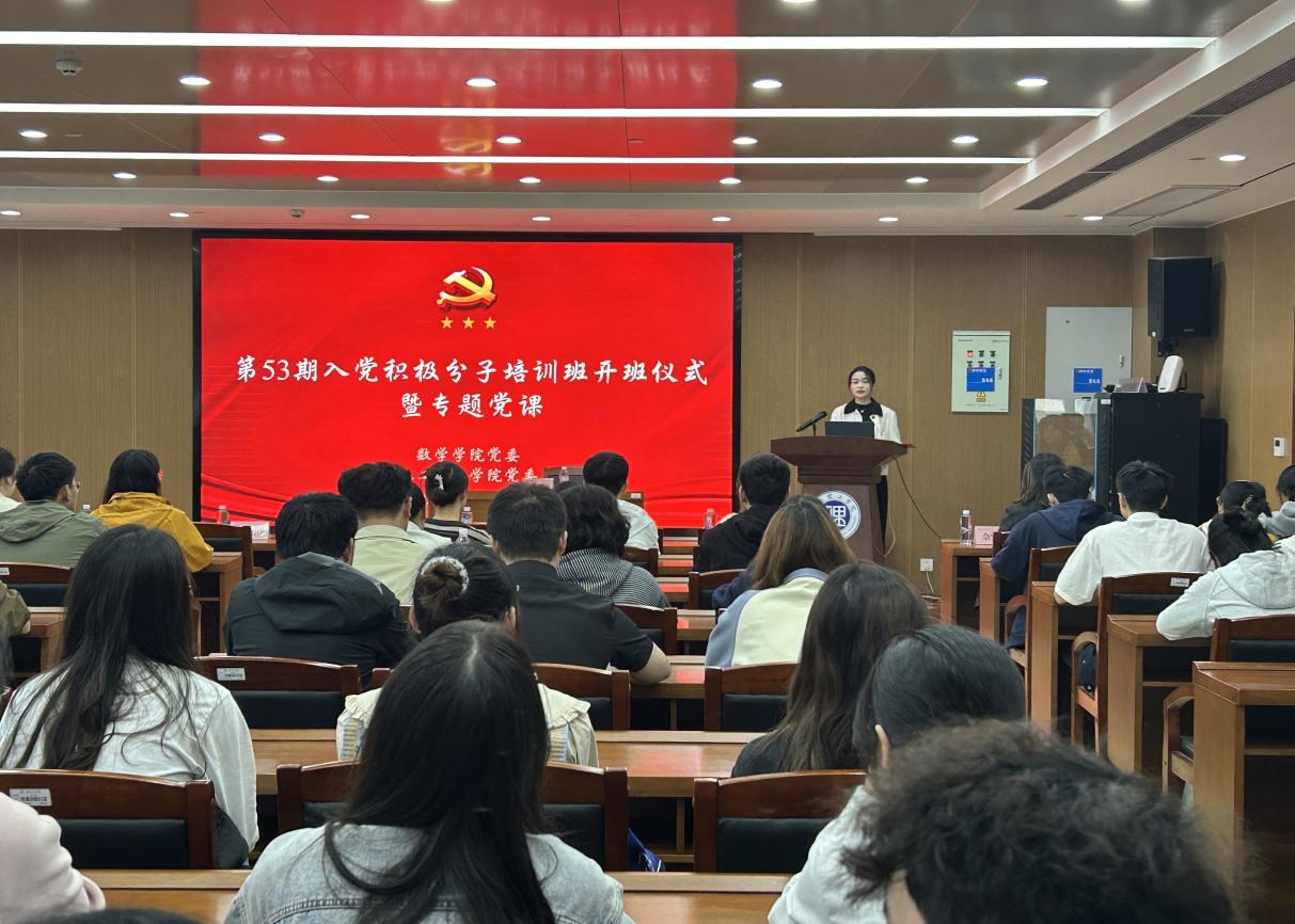 11月4日下午,太阳成集团tyc与人工智能学院在第17102会议厅联合举办第53期入党积极分子培训班开班仪式暨专题党课。校党委委员、组织部部长胡文静应邀出席并讲授专题党课。太阳成集团tyc党委书记江五元、人工智能学院党委书记贺波彬、太阳成集团tyc党委副书记万娟霞出席活动。两院组织员、各支部书记,第23期发展对象及第53期入党积极分子参加培训。