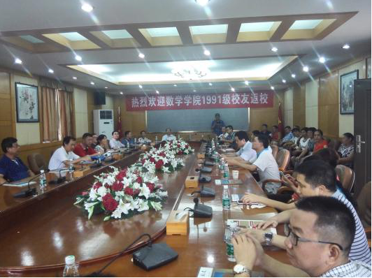 2016年8月6日上午,太阳成集团tyc于北院办公楼319隆重举行数学专业1991级校友座谈会。太阳成集团tyc院长孙明保,院党总支书记阳鲁平,副院长周立仁出席座谈会。谭秀山等教师代表及1991级近60人参加座谈会。
