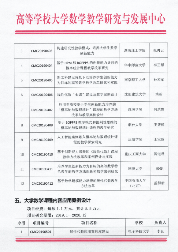 张再云教授喜获“教育部高等学校大学数学教育与研究发展中心”教学研究项目立项