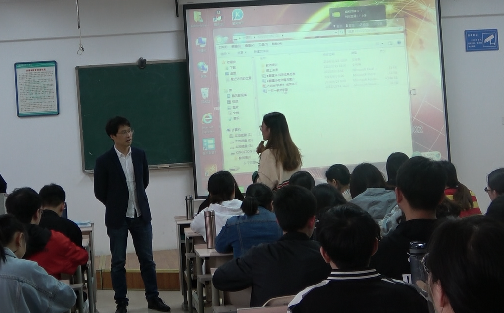 何雄老师首先根据学生观摩岳阳市第一届青年教师教学竞赛初中组的决赛视频的体会,与同学们进行互动交流,了解学生观课的基本情况,然后,就选手在比赛过程的精彩表现与不足之处进行了精准的点评,并引导学生如何观课,如何从观课反思中快速成长。