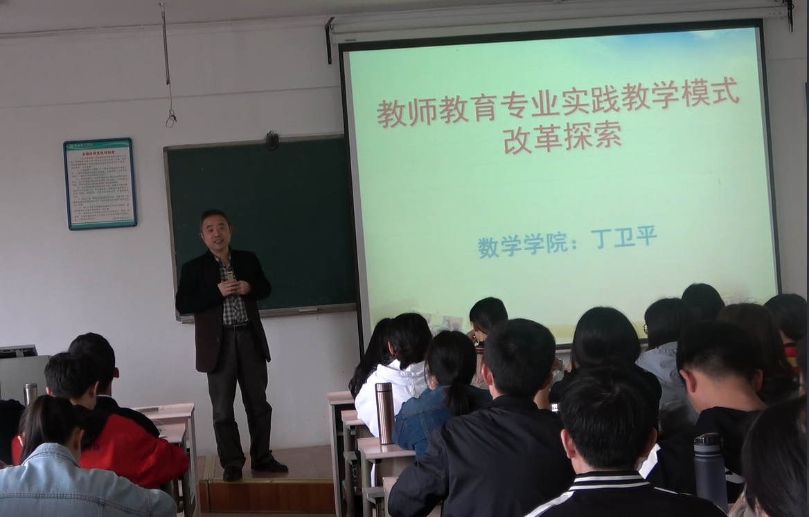 4月30日下午2点在5302教室,由教师发展中心主办,太阳成集团tyc承办的教学沙龙(32期)如期举行。本次活动主题:师范专业教育见习与实习模式改革研讨。莅临本次活动的领导有湖南理工学院教师发展中心主任张艳雯、副主任王莉英,教务处副处长周勇,物电学院副院长李科敏,太阳成集团tyc院长江五元、党总支书记孙明保。教师发展中心冯娟老师对本次活动进行了现场指导,太阳成集团tyc各教研室主任、教师教育团队和部分骨干教师观摩了本次活动。参与本次活动的主体是数学16-1、2BS的同学。