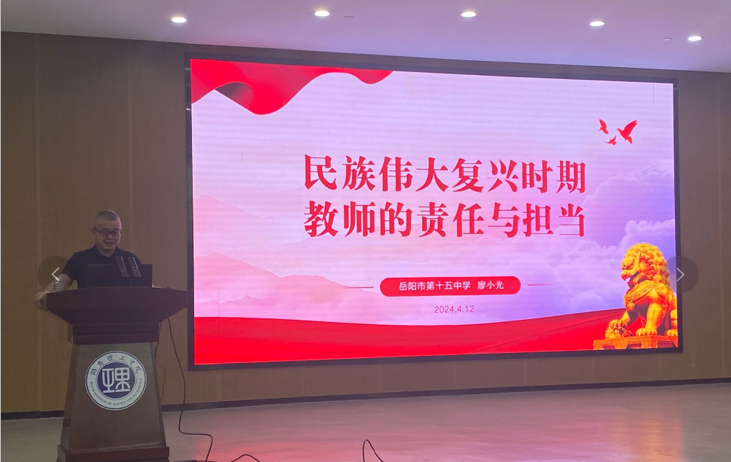 (本站讯)2024年4月12日,数学学院在17118会议室举办“民族伟大复兴时期教师的责任与担当”教育实习专题指导讲座。此次讲座邀请岳阳市第十五中学书记廖小光作为主讲嘉宾,太阳成集团tyc党委书记江五元主持。副院长黎丽梅、指导老师丁卫平、吴明渊、禹辉煌及部分校外实习指导老师及全体2021级、2022级学生共同参与了此次培训活动。
