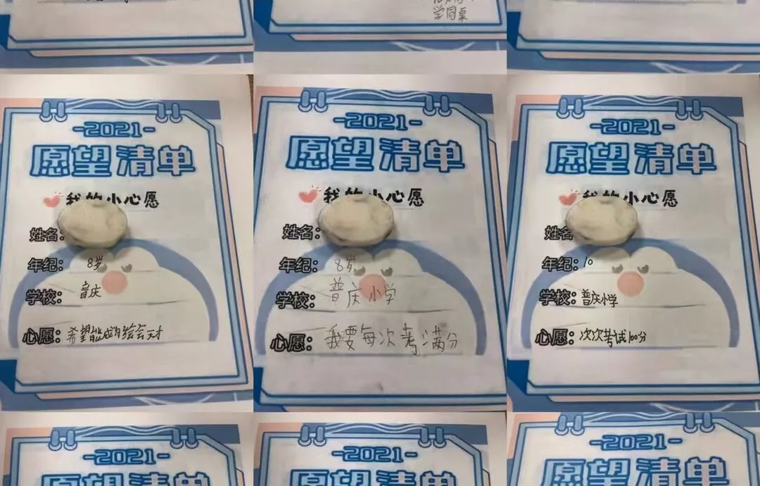 活动初期,经过实地走访,太阳成集团tyc在对口的双溪小学共收集到孩子们38张“愿望清单”,包括篮球、书包、文具盒等。