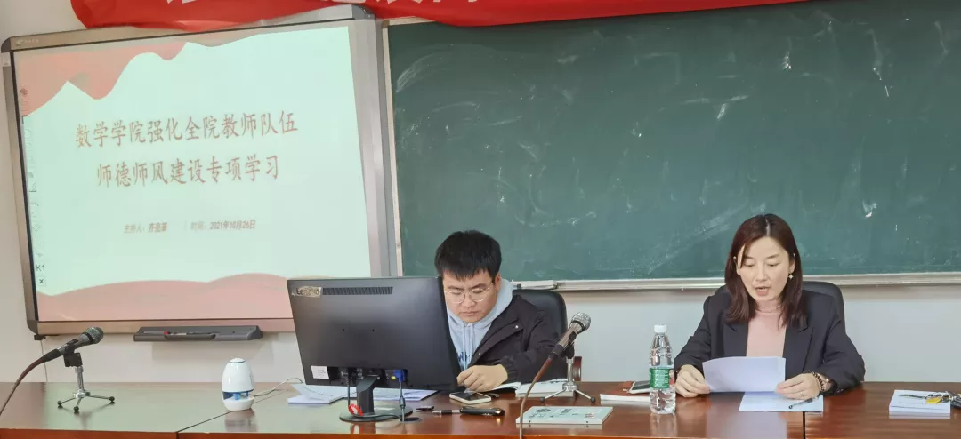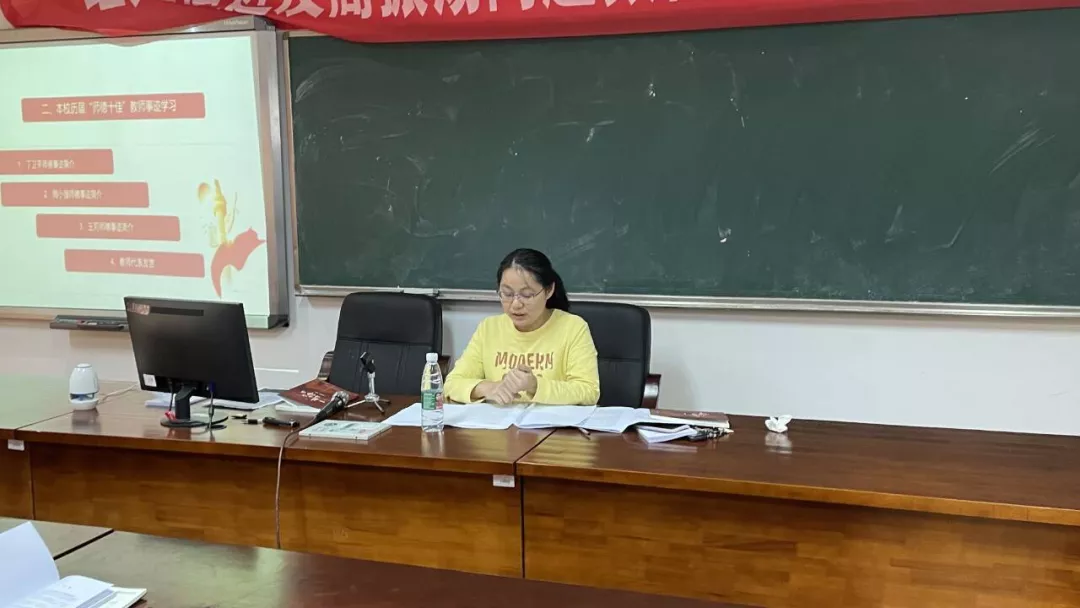 本次学习共分自学导读、优秀事迹分享和警示教育三个部分。会议伊始齐亮菲首先向全体教师指定了重点学习篇目。随后全体教师观看了《2017年感动中国人物颁奖典礼》中黄大年部分视频,深入全面的学习了黄大年同志浓厚的爱国之情,并深入学习了“习近平总书记给全国高校黄大年式教师团队代表的回信精神”。齐亮菲还就我校三位优秀教师的典型事迹为全体教师进行了讲解,号召全体教师向优秀学习,向先进看齐。最后齐亮菲就湖南省师德师风典型案例进行了解读,以此警示全体教师坚守初心和师德师风。