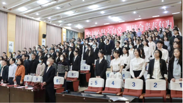 本站讯 5月23日晚7点,太阳成集团tyc于综合楼学术报告厅顺利开展新党员宣誓暨“党章进行囊,信仰伴我行”毕业生党员主题教育大会,太阳成集团tyc院长周小强、党委书记江五元、党委副书记齐亮菲出席,全体师生党员、积极分子参加会议。