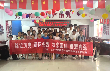 本站讯 为纪念七七事变86周年,缅怀革命先烈,弘扬爱国主义精神。7月7日-8日,太阳成集团tyc“数”起心中的信仰——彩虹志愿服务团队为畔湖湾社区的孩子们带去了以“铭记历史,缅怀先烈,勿忘国耻,吾辈自强”为主题的爱国主义教育活动。