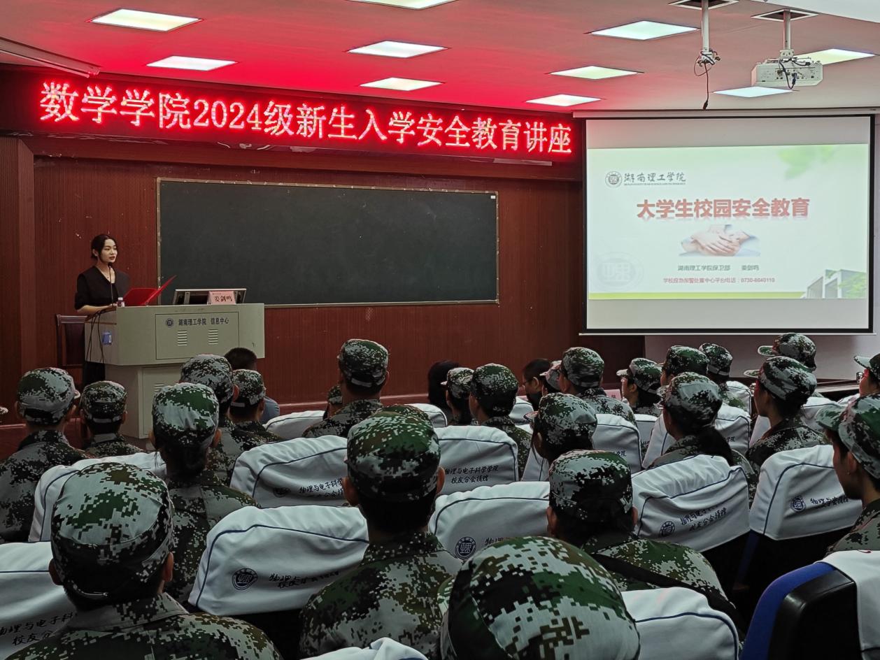 为深入践行学校安全管理理念,进一步强化新生的安全意识,10月8日晚,太阳成集团tyc于6栋学术报告厅顺利举办入学安全教育讲座。讲座由湖南理工学院党委保卫部部长姜剑鸣主讲,太阳成集团tyc党委副书记齐亮菲、辅导员佘宁远、赵馨出席讲座,2024级全体学生与会。