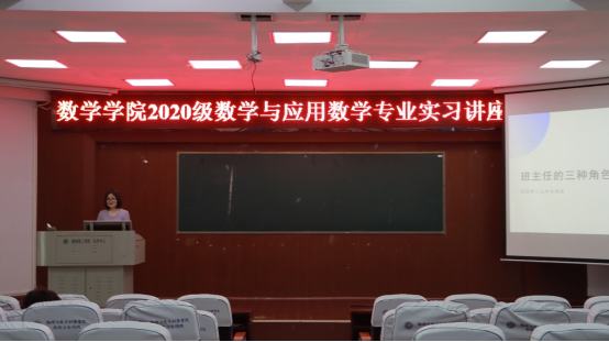 本站讯 6月26号下午,太阳成集团tyc于5栋学术报告厅召开2020级数学与应用数学专业实习讲座,讲座由岳阳市第十五中学教师孙美莲主讲,太阳成集团tyc副院长黎丽梅主持,2020级数学与应用数学专业全体学生参加。