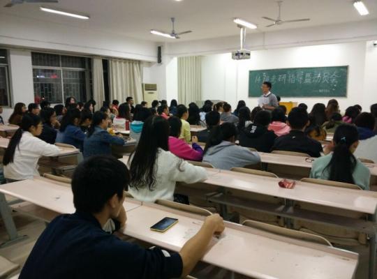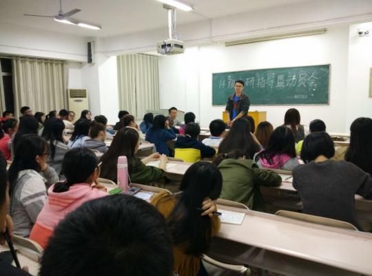 校园网讯为了帮助我院14级同学更好地了解与准备考研,太阳成集团tyc10月12日晚于5409教室举办14级考研指导暨动员会。党总支副书记易政群、考研专干何铁勇、罗德仁博士出席会议。14级有考研意向的同学参加会议。