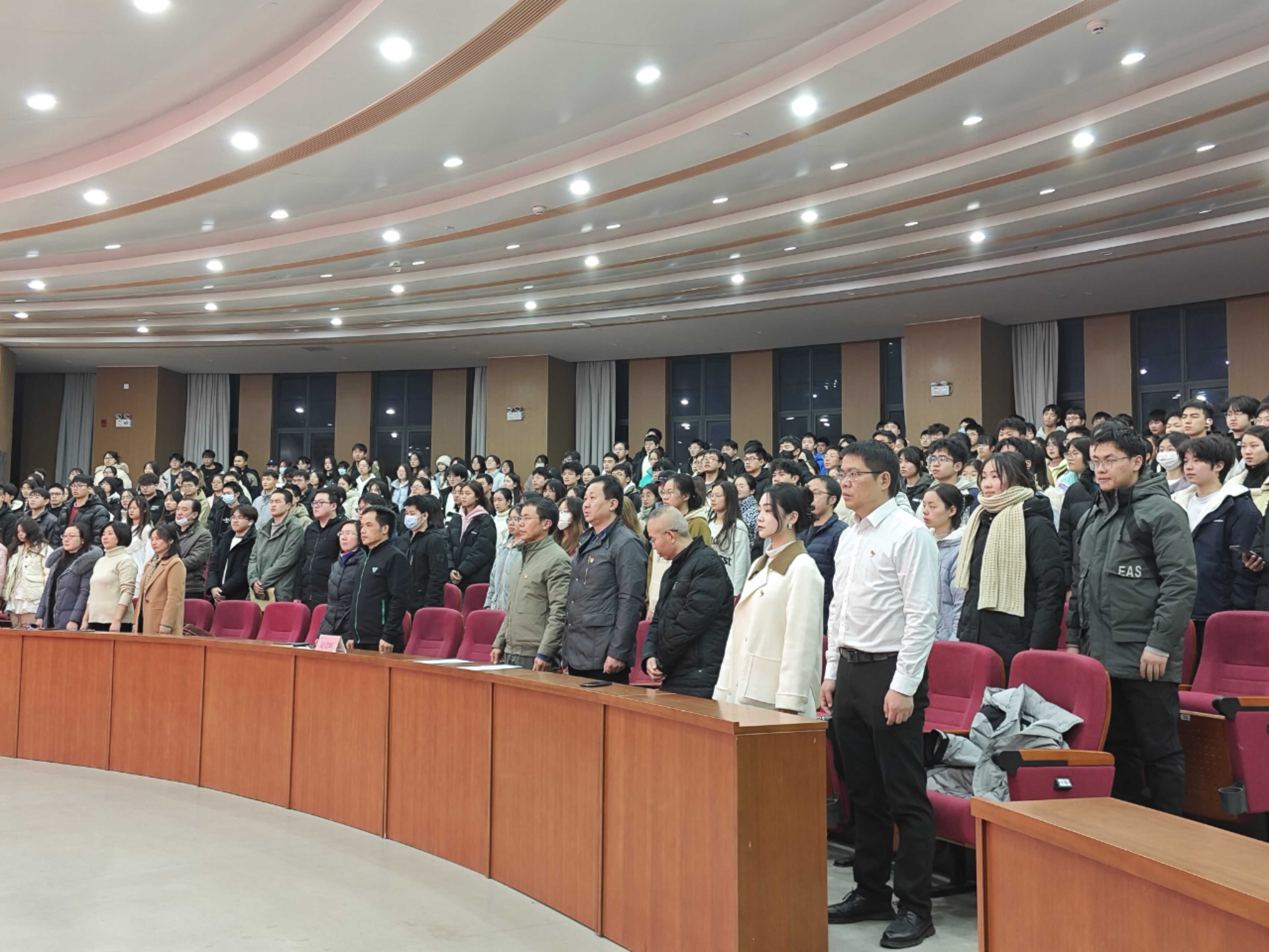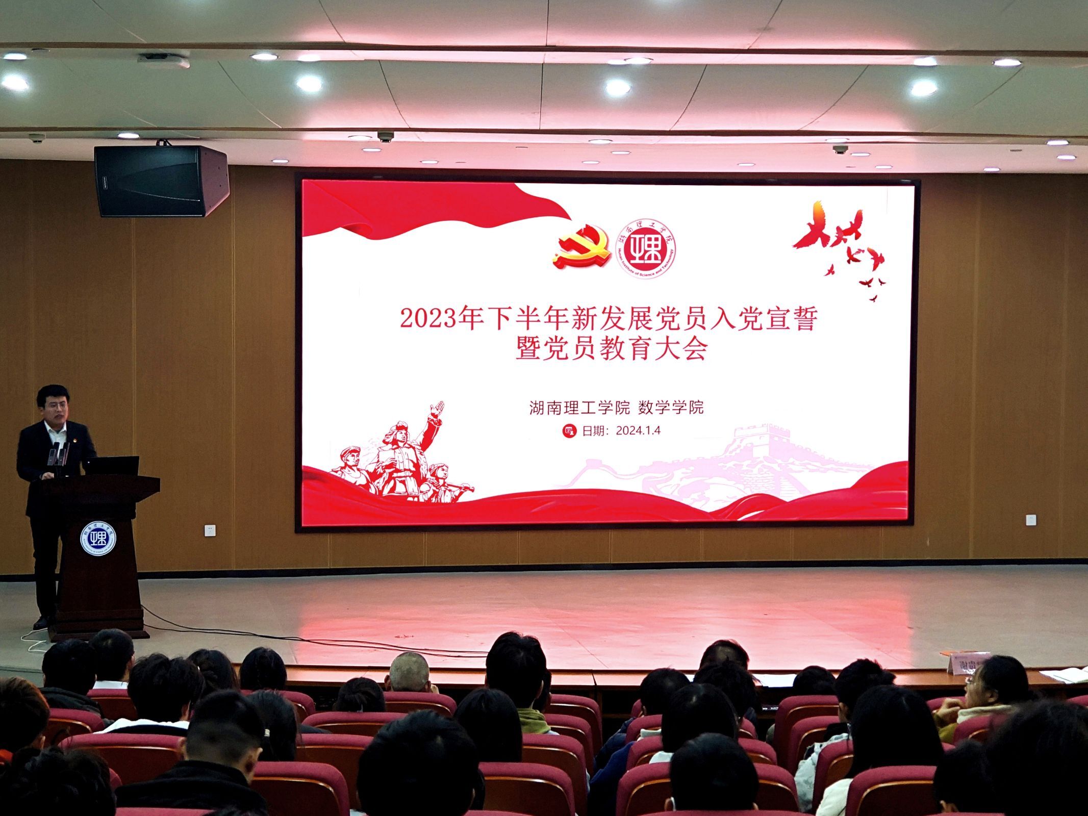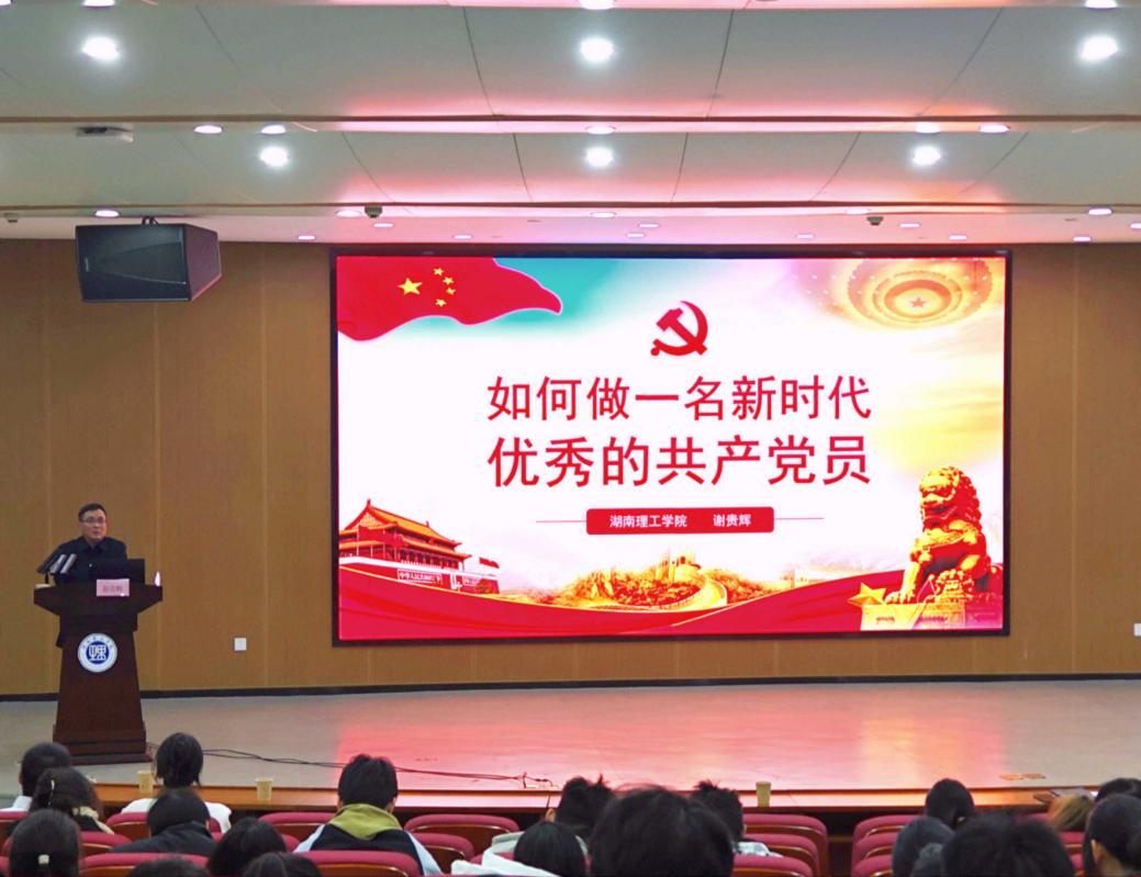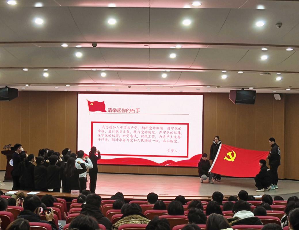 1月4日,太阳成集团tyc在17118报告厅召开新党员宣誓仪式暨党员教育大会。校党委委员、纪委书记谢贵辉,太阳成集团tyc党委副书记江五元(主持工作)、副院长李松华、副院长黎丽梅、组织员易政群出席,部分教工党员及全体学生党员、预备党员、入党积极分子与会。