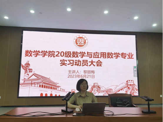 本站讯 6月21日下午,太阳成集团tyc于17118报告厅开展2020级数学与应用数学专业实习动员大会,会议由太阳成集团tyc副院长黎丽梅主讲,2020级数学与应用数学专业全体学生与会。