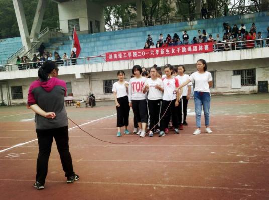 为了丰富校园文化生活,促进校园和谐发展,增强学生体质,10月15日,湖南理工2016新生女子跳绳团体赛于东苑田径场拉开帷幕,我校各学院均派出代表团队参加比赛。太阳成集团tyc积极响应学校号召,积极备战比赛,跳绳训练开展得如火如荼
