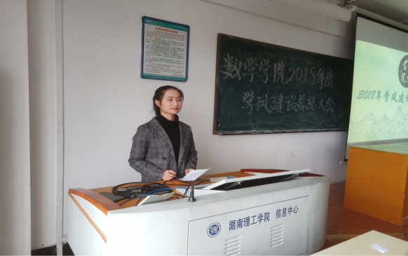 大会开始,17、18级各班班长根据会前抽签顺序依次展示ppt并就本年度班级学风建设进行总结演讲,其中包括本班思想建设、社会实践与志愿服务、文化建设、网络媒体建设等方面。介绍了本班举办和参与的各项活动,展示了本年度班级个人及团体的获奖情况,统计了各个考试的平均分及通过率,对于班级存在的问题进行指出并反思。最后,学院老师们对其做出了评比打分并向班级颁发荣誉证书。孙明保老师对此次会议的召开表示肯定,并呼吁同学们要在大学建立学习目标,打造不一样的大学生活。