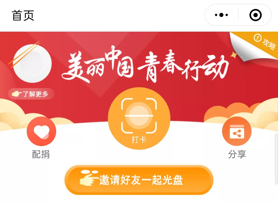 本站讯 2020年4月22日起,微信小程序“光盘打卡”活动正式启动。
