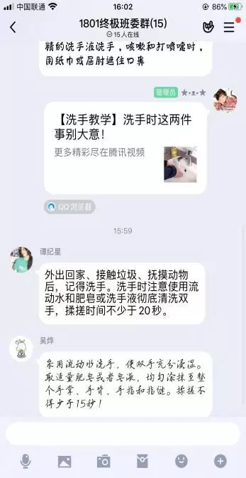 在总结讨论过程中,同学们积极发言,表达自己的想法,及时提出自己的疑虑。面对一些错误做法立马纠正,还会列举一些相关实例,分享自己看到过的视频。虽然此次活动是在线上开展,但同学们丝毫没有敷衍了事。显然,在疫情面前,每个人的态度都是坚决的,坚决做好防疫工作,拒绝成为新冠病毒的“下一目标”。