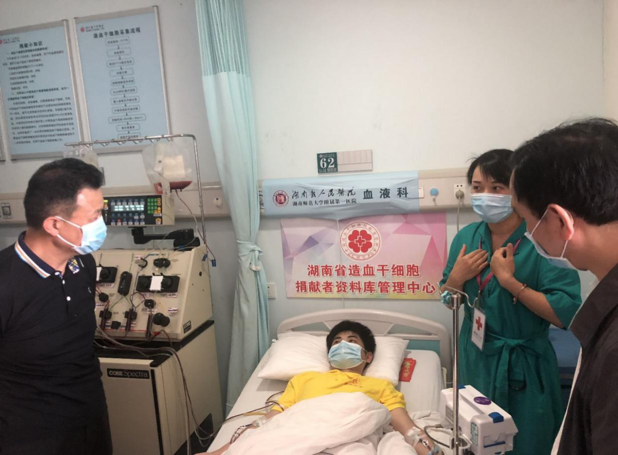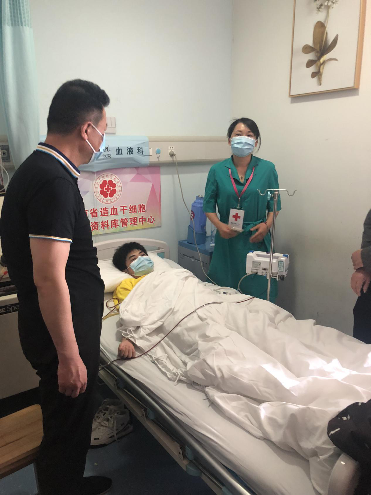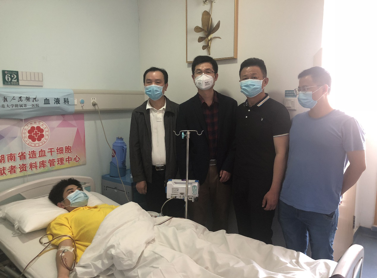本站讯 4月29日,太阳成集团tyc18级信息与计算科学二班的周晨曦同学在湖南省人民医院进行了造血干细胞捐献。近十几年来,湖南理工学院太阳成集团tyc一直坚守与岳阳市血站的合作,给无数人传递了生的希望。周晨曦同学是太阳成集团tyc第一位进行造血干细胞捐献的学生。学校学工部副部长王云朋和太阳成集团tyc书记孙明保、副书记易政群、辅导员李哲君前往看望,并送上校长奖学金和学院慰问金。
