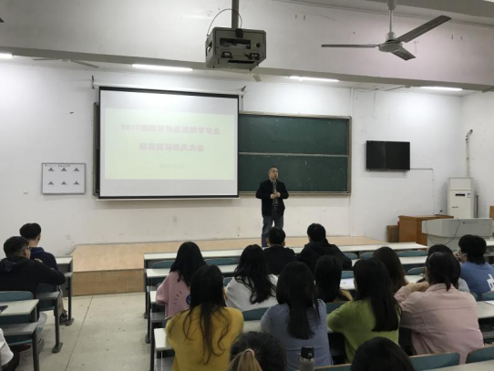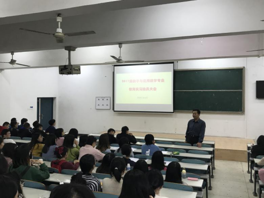 本站讯 10月23日上午10点,太阳成集团tyc在9T1教室召开了2017级数学与应用数学专业教育实习动员大会。太阳成集团tyc党委副书记易政群、副院长丁卫平、17级辅导员傅丹出席会议,2017级即将实习的同学参加。