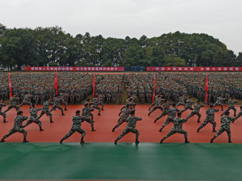 典礼开始,武警教官和学校民兵连进行汇报表演。随后,党委委员、纪委书记谢贵辉进行军训总结,对军训中出现的错误和存在的不足给予改正建议,并对军训中表现良好的班级集体进行表彰。最后,卢先明对学生的未来发展给予了美好期望。