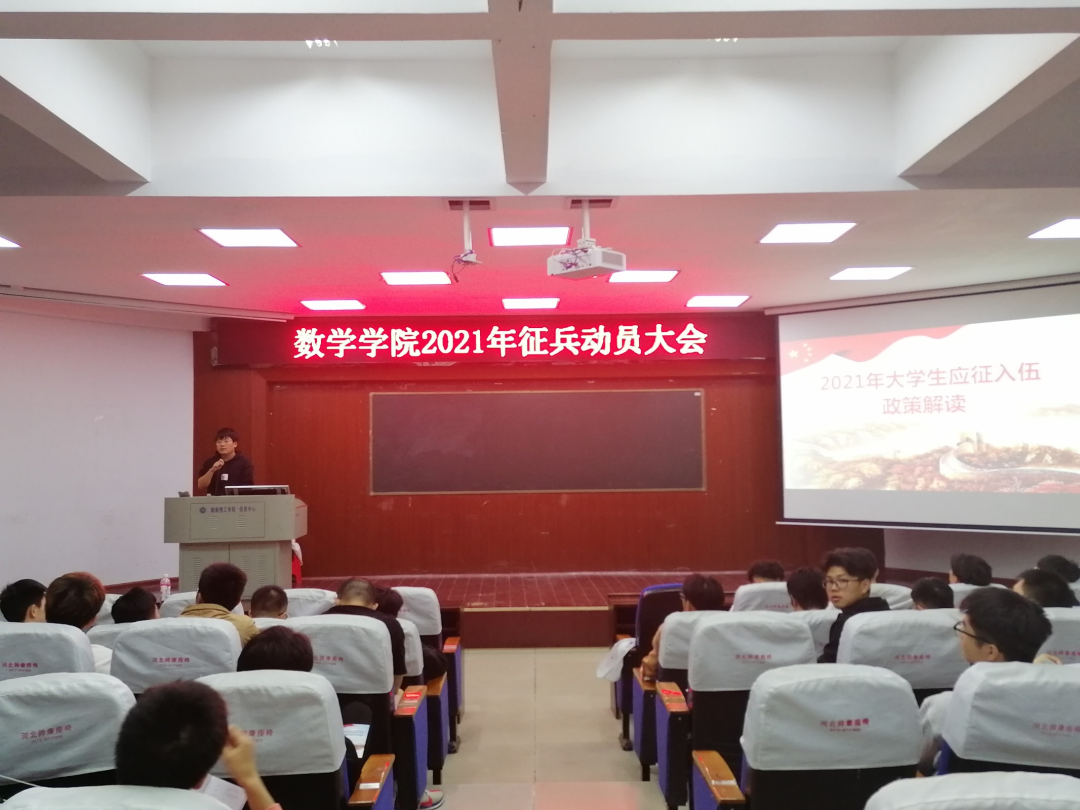 本站讯 5月20日晚7:30,太阳成集团tyc在六栋学术报告厅举行了“2021年征兵动员大会”,太阳成集团tyc党委副书记易政群出席并发表讲话,20级辅导员徐笑天主持会议,太阳成集团tyc部分男生参加会议。