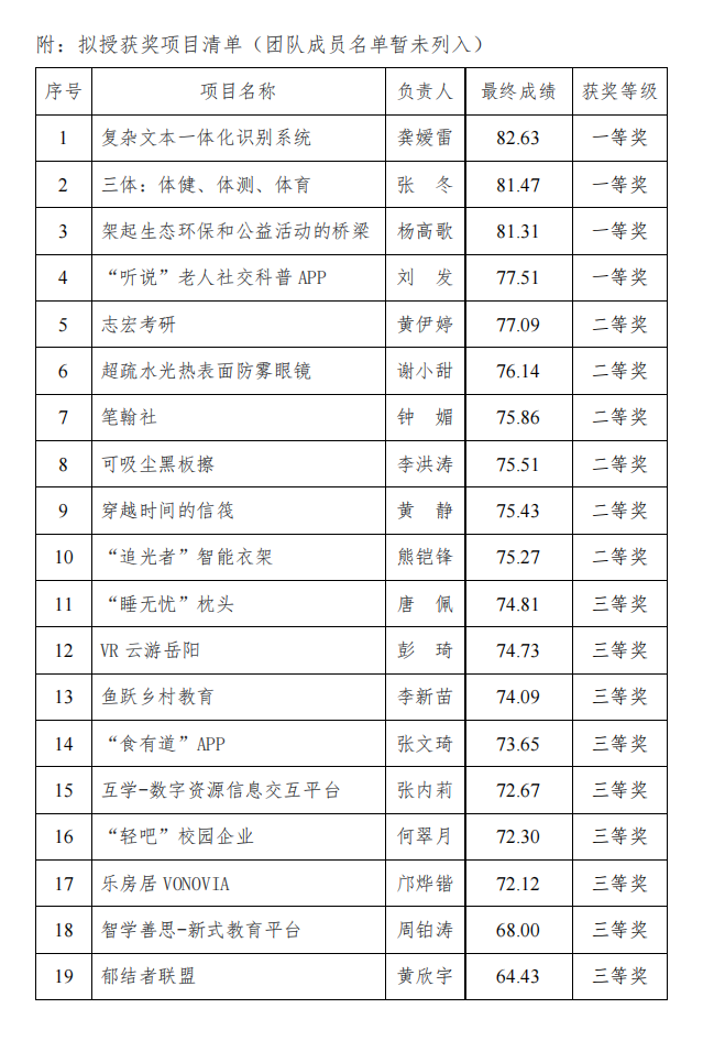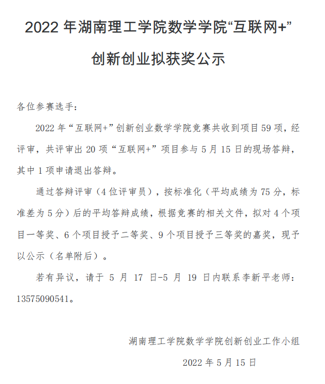 2022年湖南理工学院太阳成集团tyc“互联网+”创新创业获奖公示