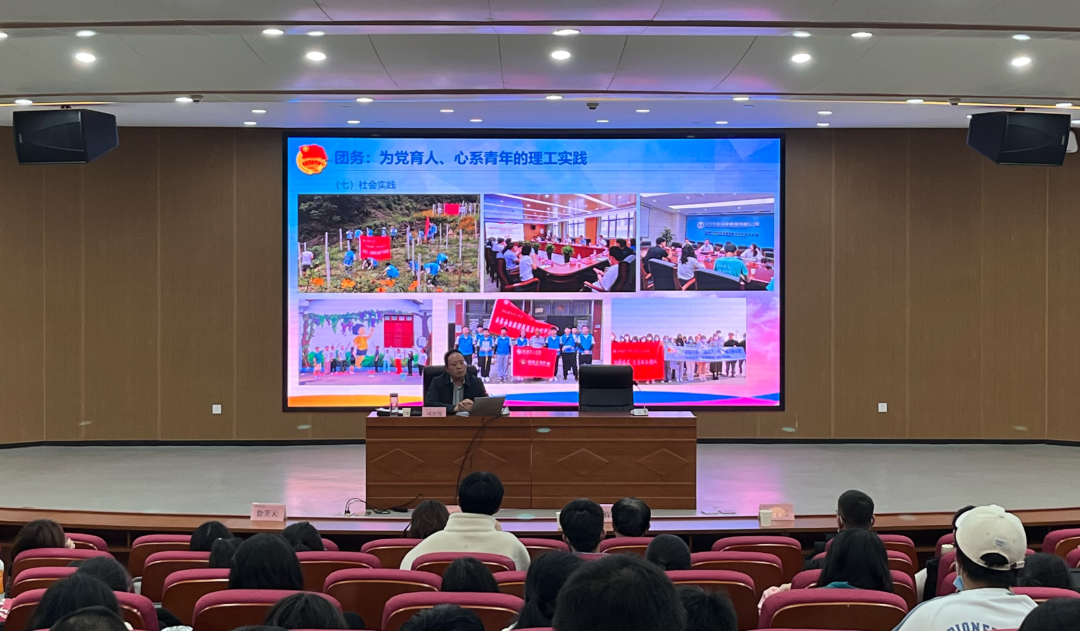 司念伟立足于“团史:中国共产党缔造了中国共青团”,将共青团的诞生和发展按照时间进行顺序详细介绍,让同学们明白共青团的诞生与蓬勃发展离不开党,告诫青年要时刻听党话,感党恩,跟党走。“团情:党有号召,团有行动的时代需求”方面,司念伟引用习总书记对青年的讲话,结合习总书记给予众多学生回信等事例,表现出习总书记对青年的认可与期待。同时,他又列举了时代楷模黄文秀,重庆火灾中的摩托骑手,戍边英雄等事件,肯定了青年带来的价值,希望大家能成为“有理想、敢担当、能吃苦、肯奋斗”的新时代好少年。从“团务:为党育人、心系青年的理工实践”出发,司念伟介绍了我校于团党教育建设中付出的行动,并表示校团委积极参与青年马克思主义者培养工程,团校培训,青年大学习,团学骨干教育培训,让大学生志愿服务西部计划,青年志愿服务,社会实践,努力让团属培训成为令人向往的课程,让团属阵地成为令人向往的家园,让团属荣誉成为令人向往的美好,让团属活动成为令人向往的远方。最后,孙明保教育全体新生作为大学生,要拥有一技之长,珍惜时间,以学业为重并多参加有意义的活动。
