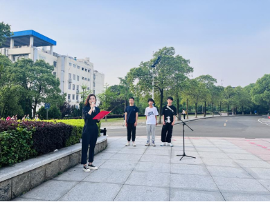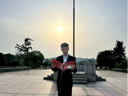 升旗仪式结束之后,2022级学生代表徐程发言,他表达了入校以来的感想以及对未来的展望,认为广大青年应当积极响应习近平总书记的号召,从每一点的付出开始,从每一件身边的小事做起,扣好人生的第一粒扣子,努力成为服务社会、奉献人民的新时代青年。最后,江五元给同学们做国旗下讲话,他提出新时代大学生要坚定信念,立鸿鹄之志,在增长专业知识的同时,应培养崇高品德,养成独立精神,将中华民族的伟大复兴作为使命担当,并号召同学们赓续优良的学习传统,展现吃苦耐劳、锐意进取的精神风貌,继往开来,争做堪当民族复兴大任的时代新人。