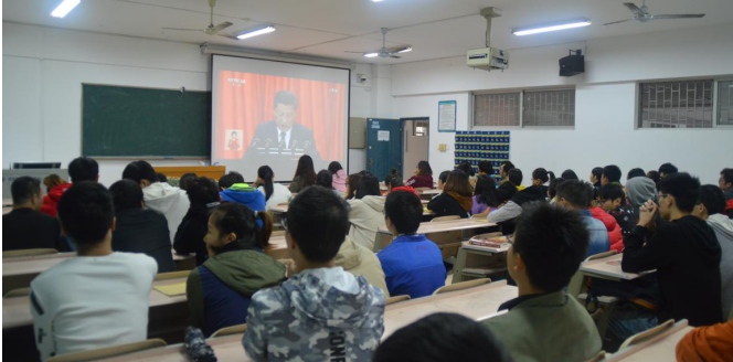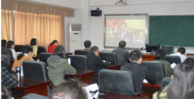 2017年10月18日上午八时五十分,太阳成集团tyc党总支组织全院师生党员及部分学生团学干部在5511集中收看中国共产党第十九次代表大会开幕式,共同听取了习近平总书记代表十八届中央委员会所作的题为《决胜全面建成小康社会,夺取新时代中国特色社会主义伟大胜利》的报告。党总支书记阳鲁平主持本次学习活动。院长孙明保、副院长周立仁、党总支副书记易政群,以及教工支部书记、学生支部书记出席了本次学习活动。